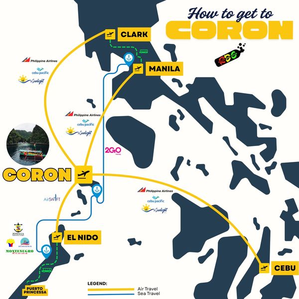 You can only get to Coron via Air or Sea travel.